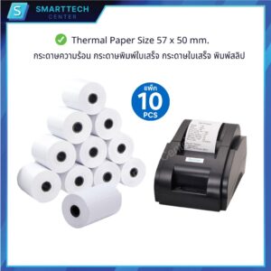 กระดาษความร้อน 57×50 mm. กระดาษใบเสร็จ เครื่องพิมพ์ใบเสร็จความร้อน Thermal Paper 58 แกรม เกรด A เกรดพรีเมี่ยม (แพ็คละ 10 ม้วน)