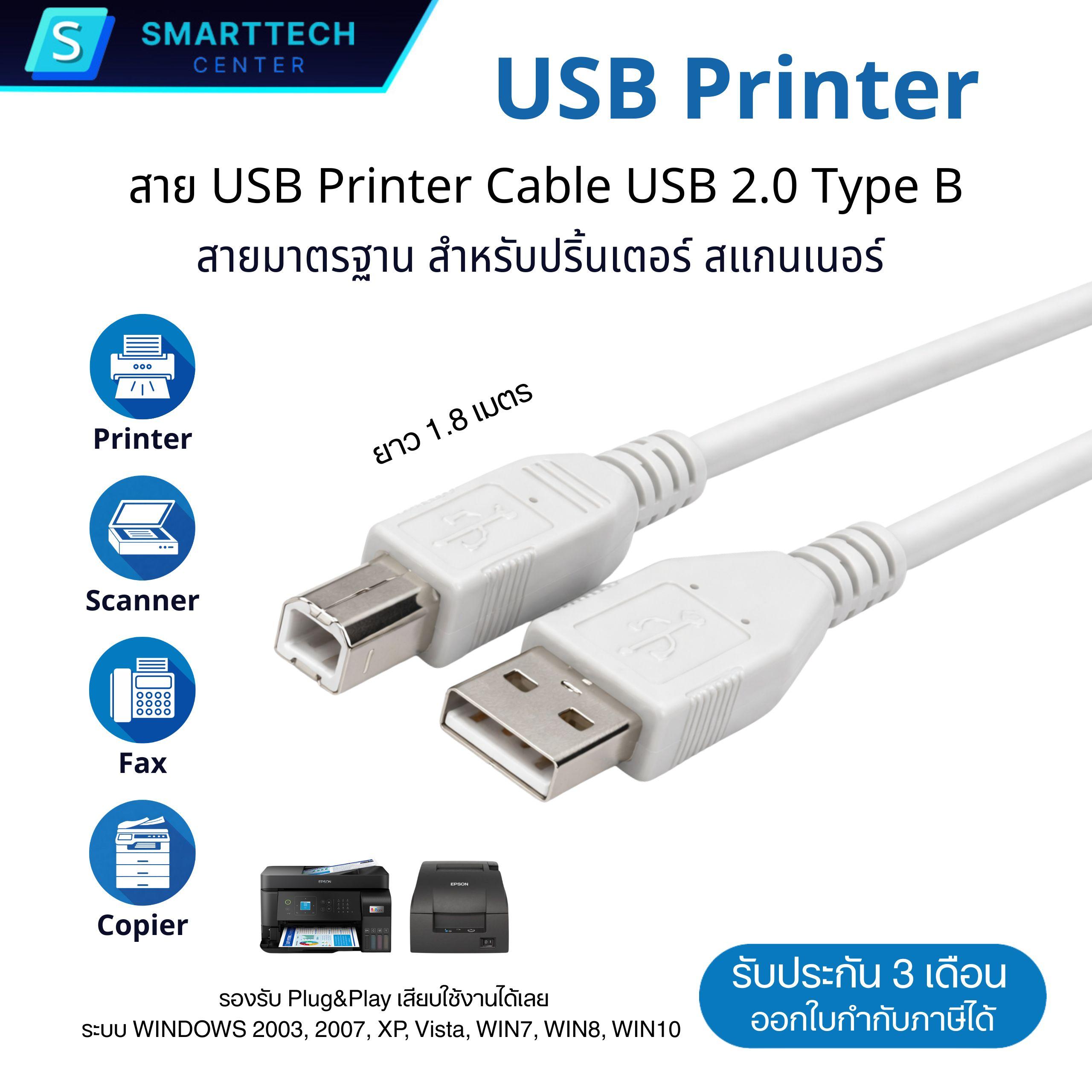 สาย Cable USB Printer USB 2.0 Type B สำหรับปริ้นเตอร์ สแกนเนอร์ สายยาว 1.8 เมตร