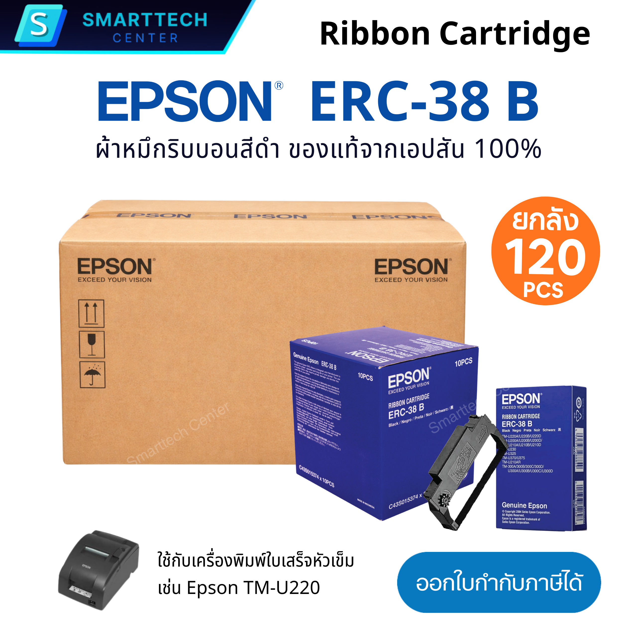 ![Epson ERC-38 B ตลับผ้าหมึกสีดำ หมึกพิมพ์ ของแท้จากศูนย์เอปสัน สำหรับเครื่องพิมพ์ใบเสร็จ TM-U220 คมชัด คุณภาพสูง [ยกลัง 120 ชิ้น] - Image 6](https://smarttechcentershop.com/wp-content/uploads/2026/04/S1_Epson-ERC-38-10-ชิ้น-06-scaled.jpg)