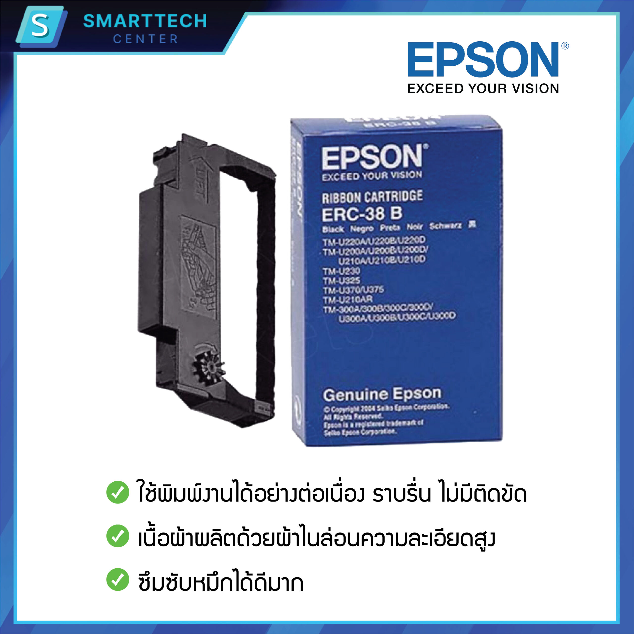 ![Epson ERC-38 B ตลับผ้าหมึกสีดำ หมึกพิมพ์ ของแท้จากศูนย์เอปสัน สำหรับเครื่องพิมพ์ใบเสร็จ TM-U220 คมชัด คุณภาพสูง [ยกลัง 120 ชิ้น] - Image 3](https://smarttechcentershop.com/wp-content/uploads/2026/04/S1_Epson-ERC-38-03-scaled.jpg)