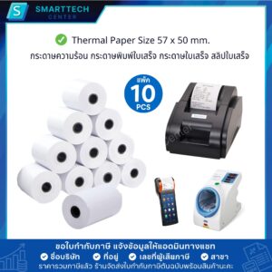 กระดาษความร้อน 57x50 mm. กระดาษใบเสร็จ เครื่องพิมพ์ใบเสร็จความร้อน Thermal Paper 58 แกรม เกรด A พรีเมี่ยม ไม่ใช้หมึก (แพ็คละ 10 ม้วน)