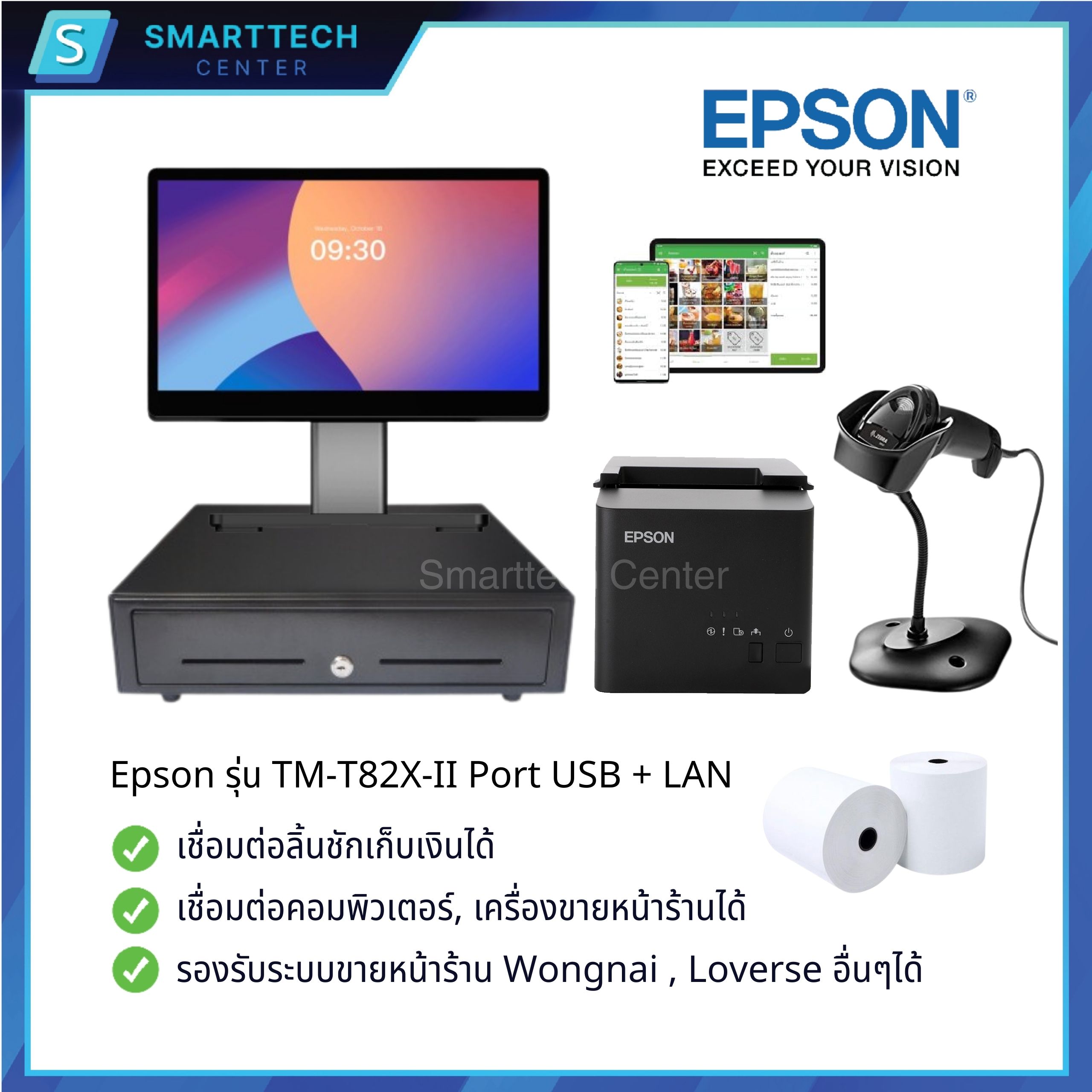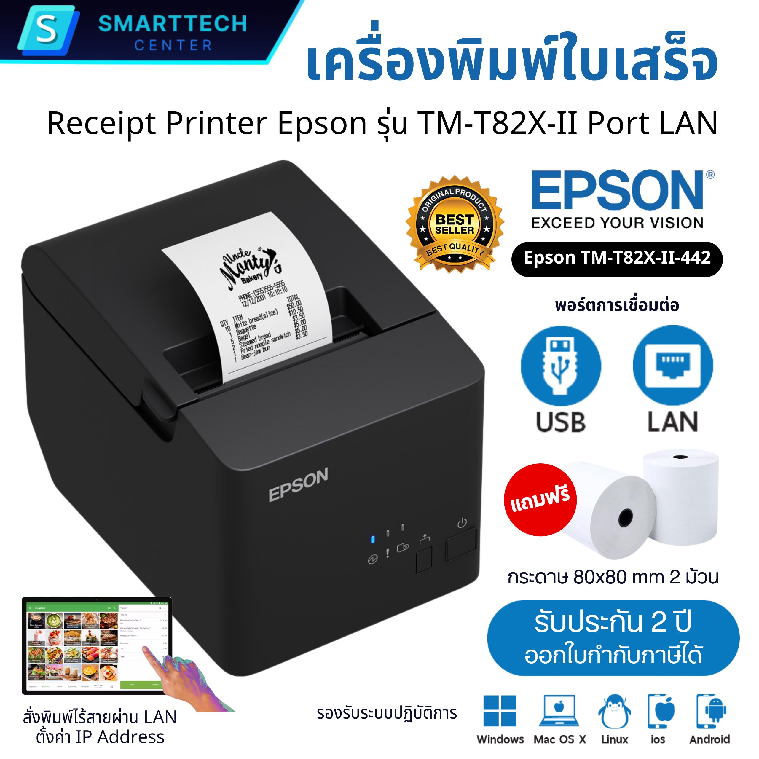 Epson รุ่น TM-T82X-II พอร์ต USB + LAN เครื่องพิมพ์ใบเสร็จระบบความร้อน ไม่ใช้หมึก ตัดกระดาษอัตโนมัติ พิมพ์เร็ว แถมฟรี❗กระดาษ 2 ม้วน