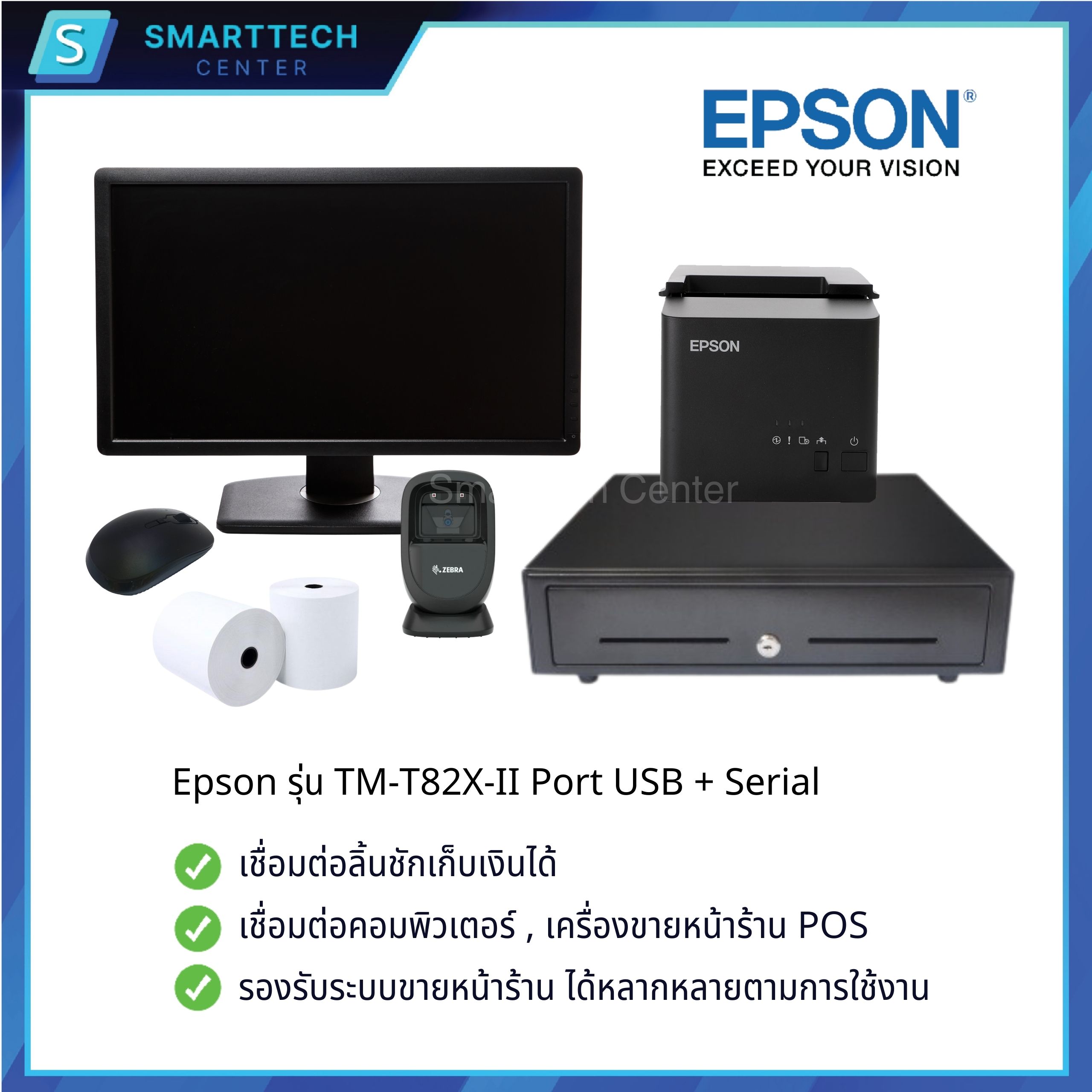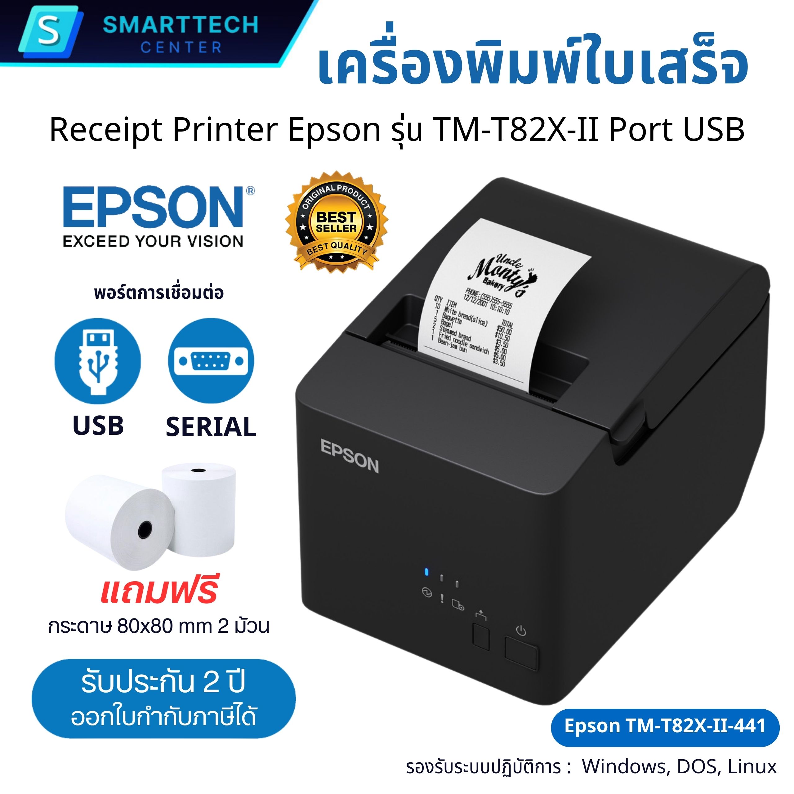 Epson รุ่น TM-T82X-II พอร์ต USB + Serial เครื่องพิมพ์ใบเสร็จระบบความร้อน ไม่ใช้หมึก พิมพ์เร็ว ตัดกระดาษอัตโนมัติ แถมฟรี❗กระดาษ 2 ม้วน