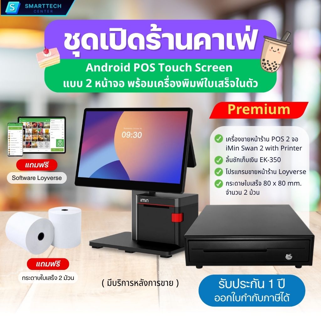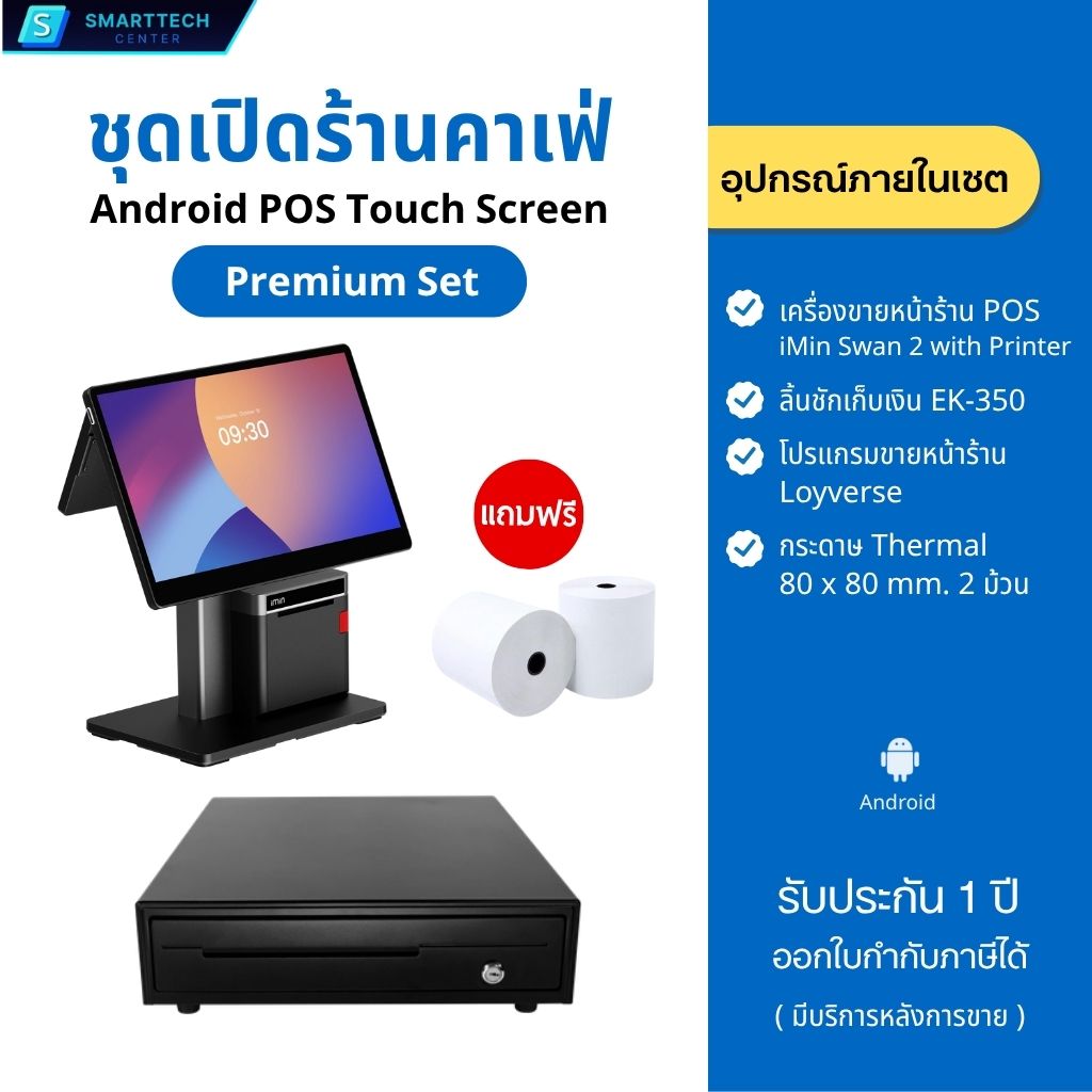 #เซตเปิดร้าน #ชุดเปิดร้าน #SmarttechCenter #แคชเชียร์ #cashier #อุปกรณ์แคชเชียร์ขายหน้าร้าน #iMin #Swan2 #D4-504 #iMinD4-504 #POS #เครื่องคิดเงิน #ลิ้นชักเก็บเงิน #ลิ้นชักแคชเชียร์