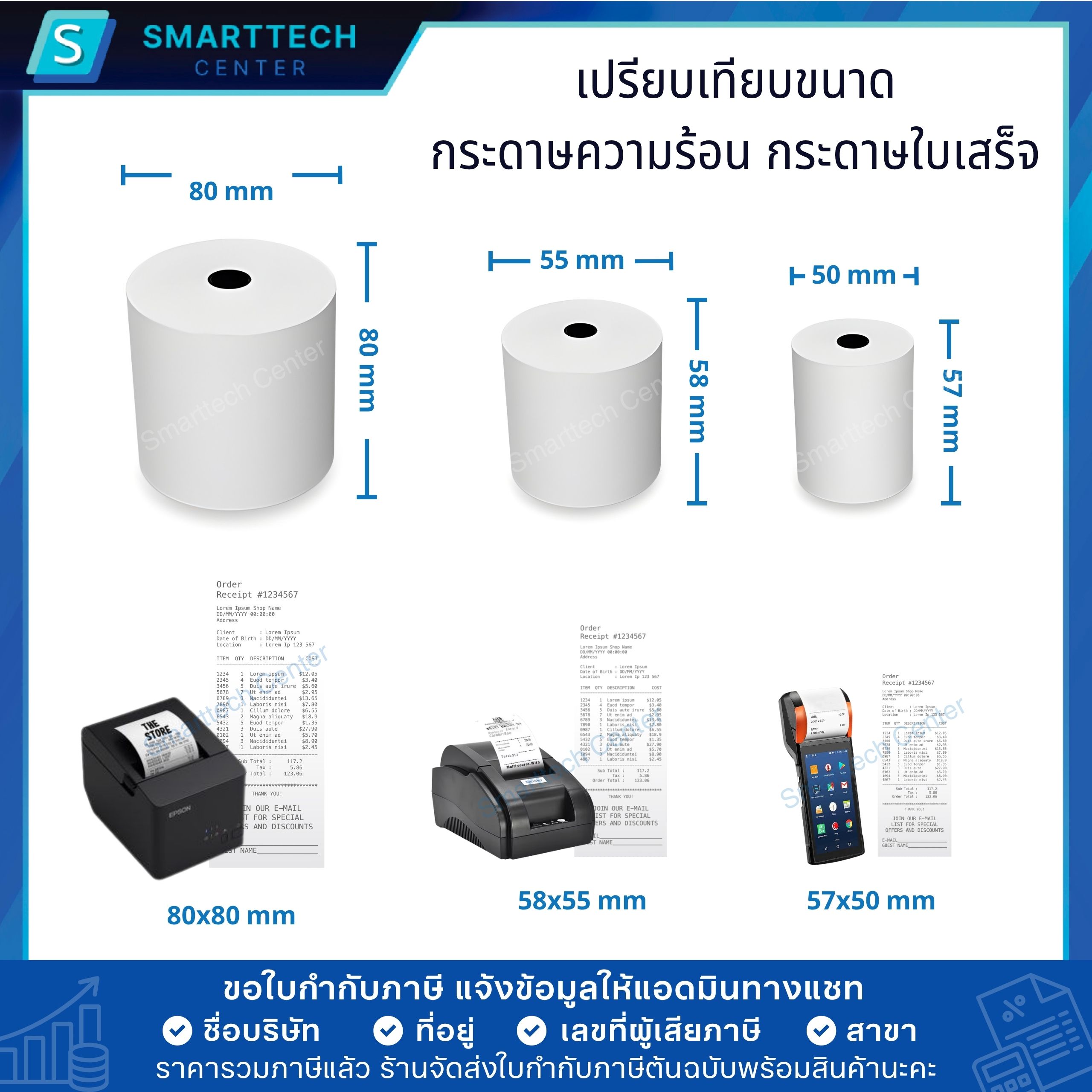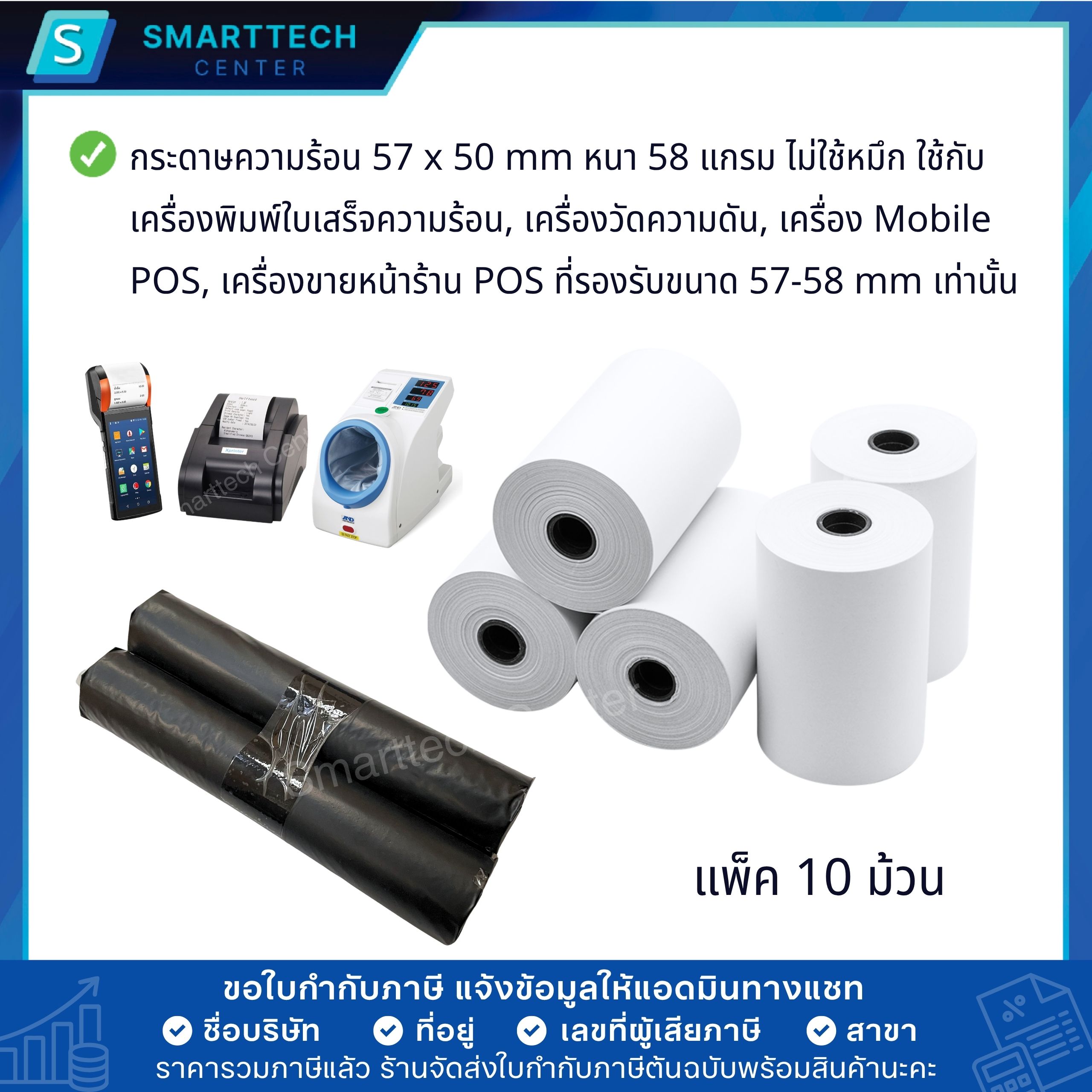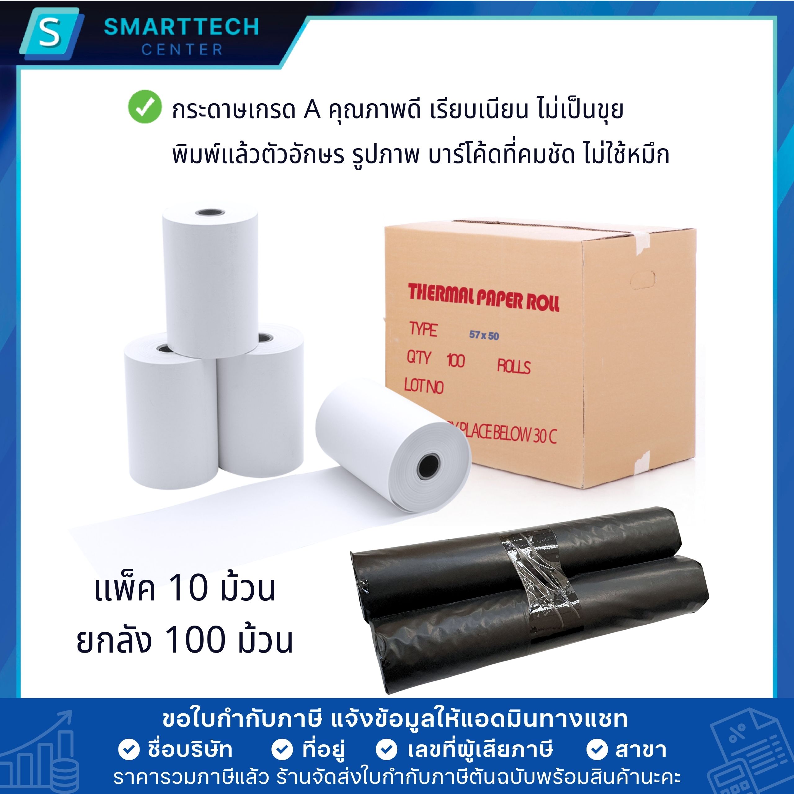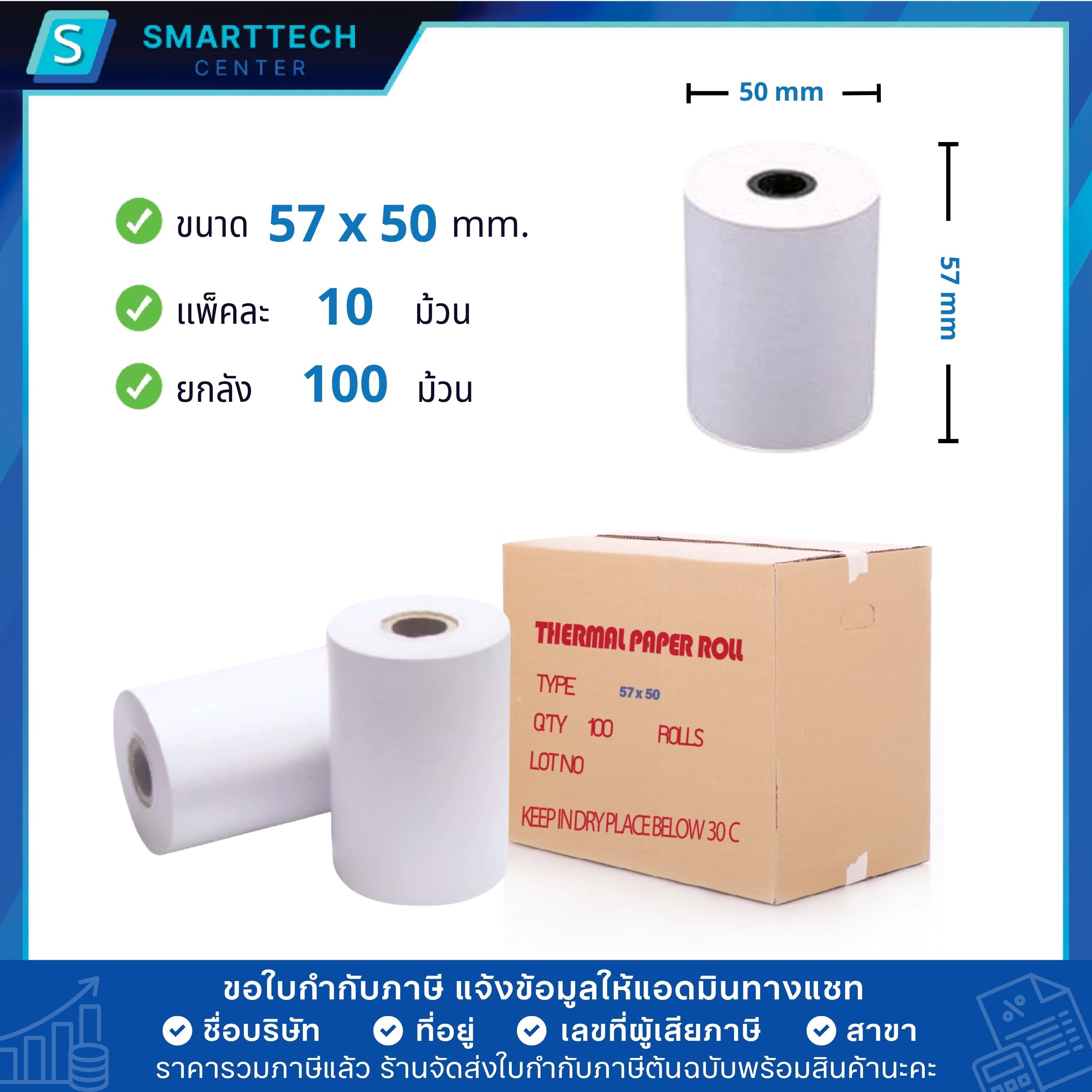 #กระดาษบิล #กระดาษปอนด์ #กระดาษบิลใบเสร็จ #กระดาษสลิปใบเสร็จ #Thermal #ThermalPaper #เครื่องพิมพ์ใบเสร็จความร้อน #พิมพ์ใบเสร็จ #ปริ้นใบเสร็จ #ใบเสร็จรับเงิน #กระดาษปริ้นใบเสร็จ #เครื่องปริ้นครัว #กระดาษความร้อน #กระดาษใบเสร็จ #SmarttechCenter #กระดาษความร้อน57x50mmแบบยกลัง100ม้วนคลิกที่นี่